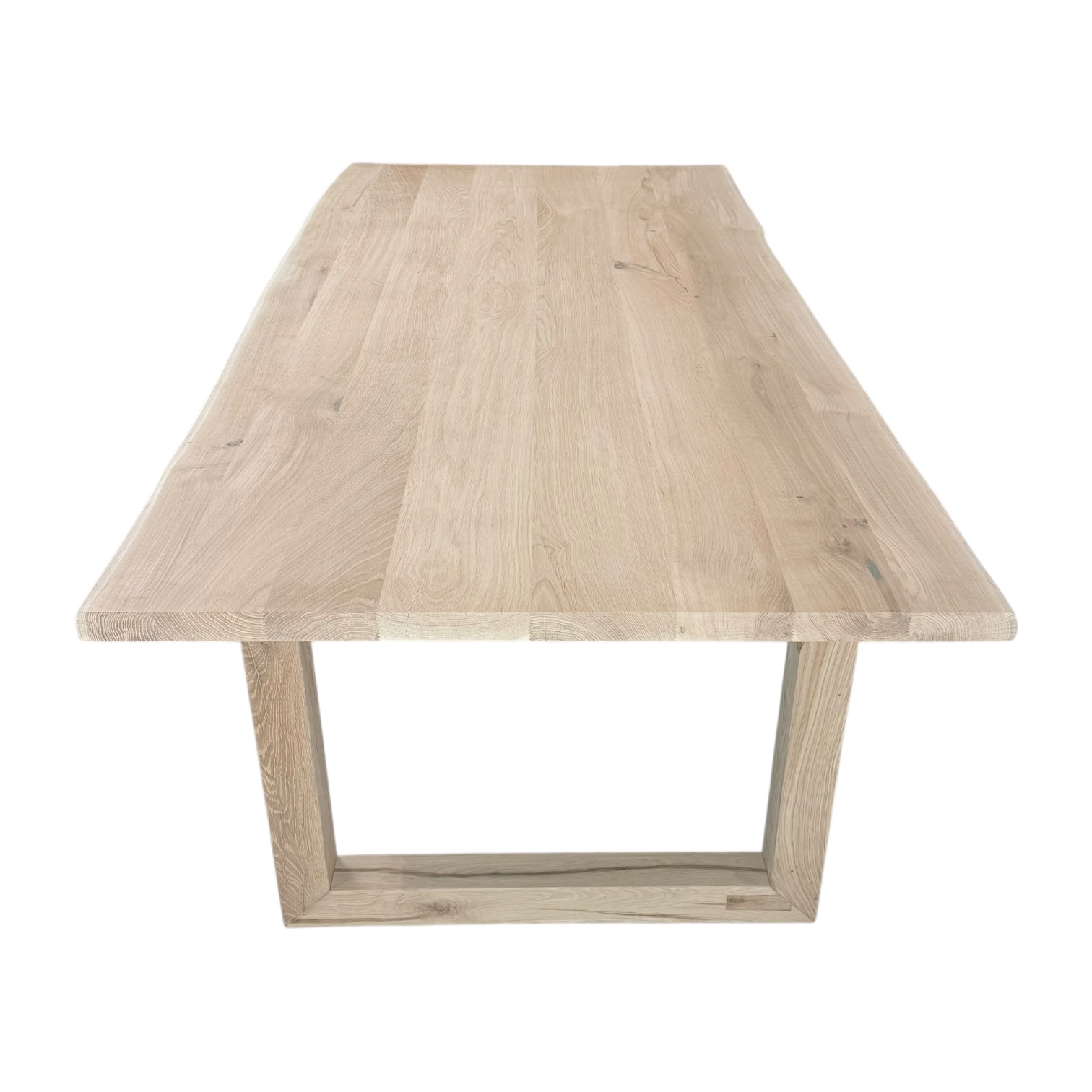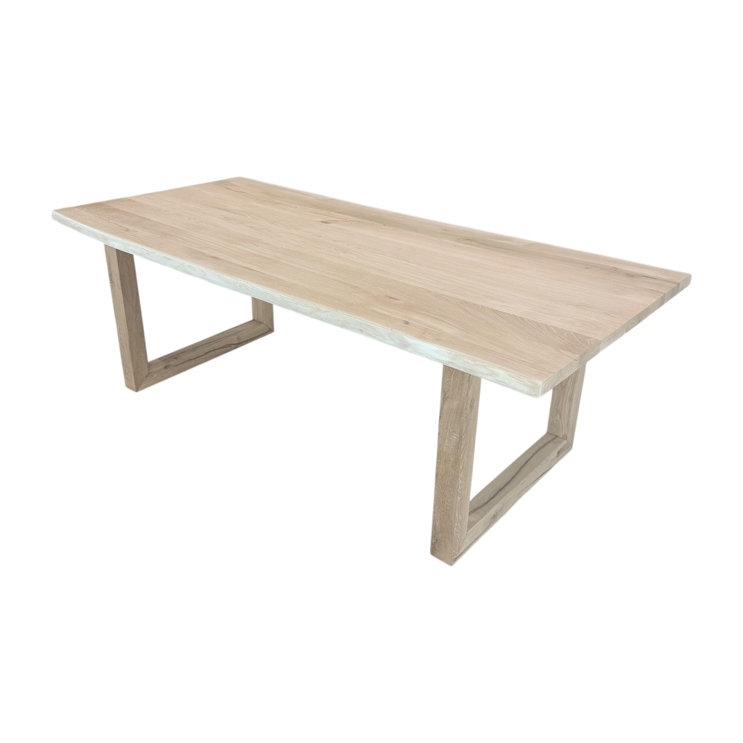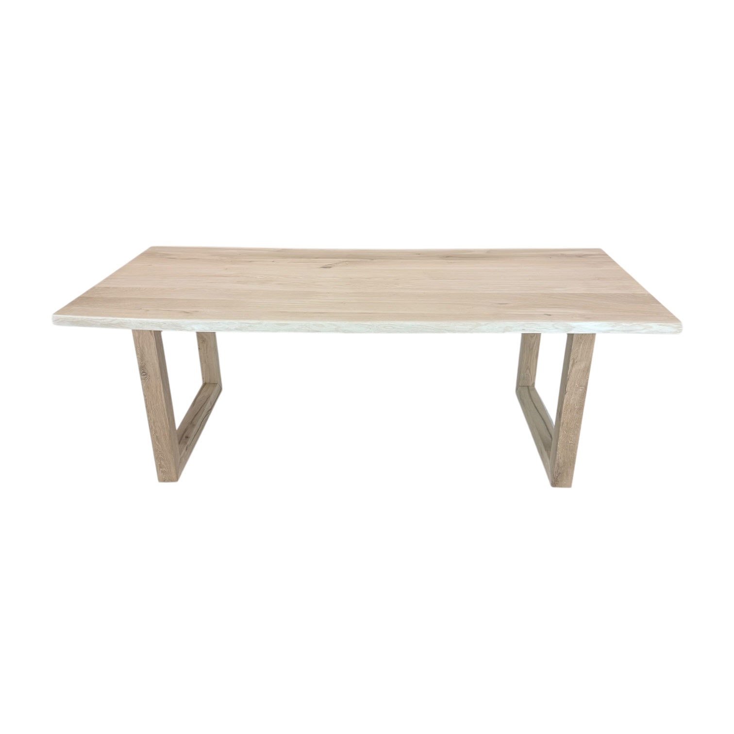 Het blad en onderstel zijn gemaakt van massief eikenhout (A/B), waarin natuurlijke noesten en lichte kleurverschillen zichtbaar blijven — precies wat het karakter van echt hout benadrukt. De U-poten zorgen voor stabiliteit en een rustige, gebalanceerde uitstraling.
