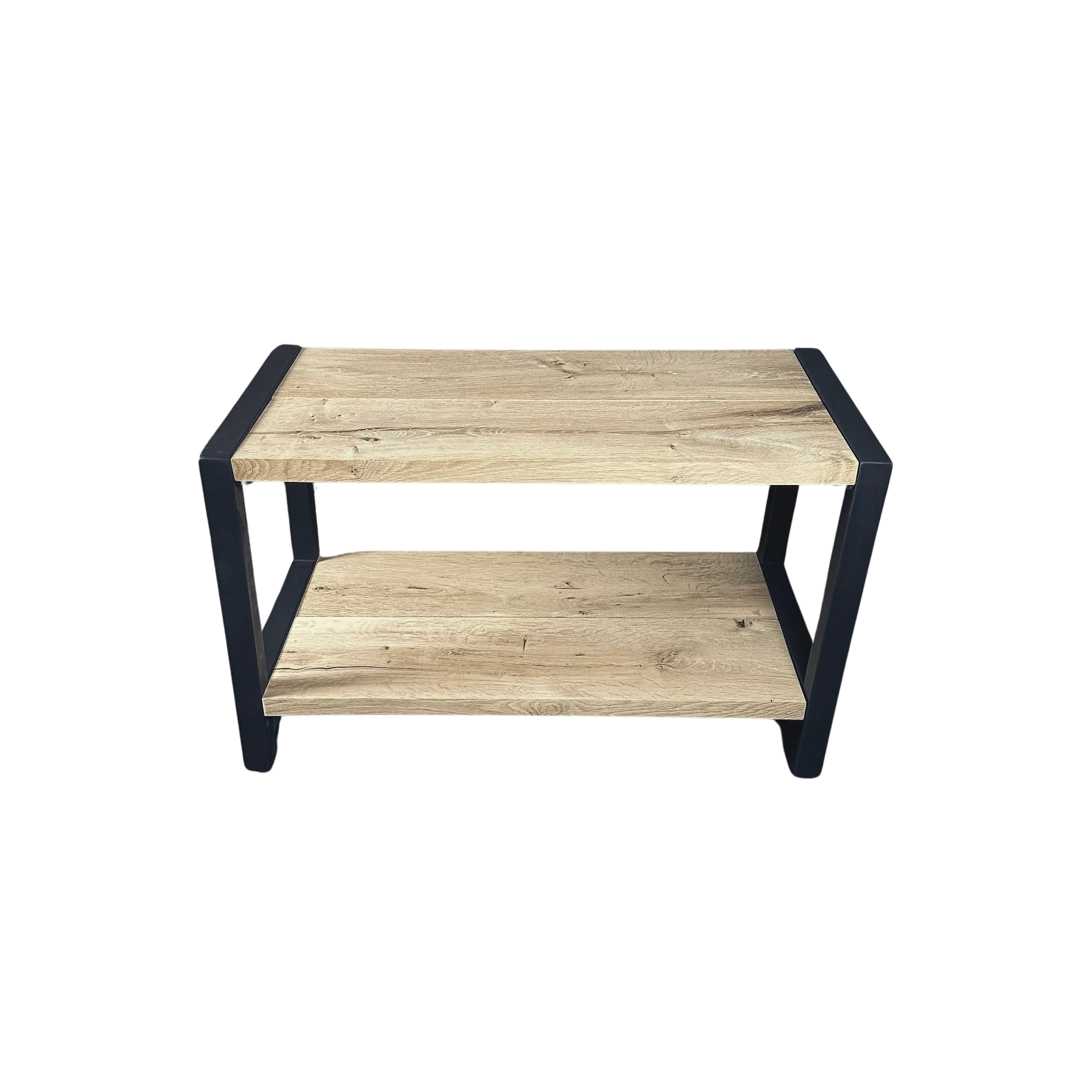Ons tv-meubel is niet zomaar een standaard stukje meubilair. Het is een kunstwerk op zichzelf, met een perfecte mix van functionaliteit en elegantie. De eiken planken, elk met een dikte van 3 cm, kunnen worden gepersonaliseerd met een scala aan prachtige oliën, waardoor ze perfect passen bij jouw interieur.